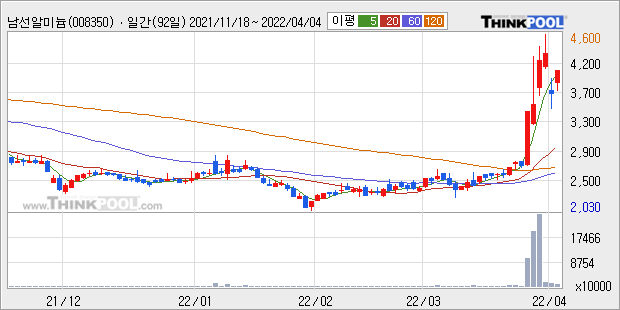 남선알미늄의 2021년 매출액은 전년대비 -14.2% 줄어든 2303억원이고, 영업이익은 전년에 이어 적자가 지속되어 -69억원을 기록했다. 이 회사의 매출액 증감률과 영업이익 증감률은 각각 코스피 하위 6%, 하위 4%에 해당된다.
