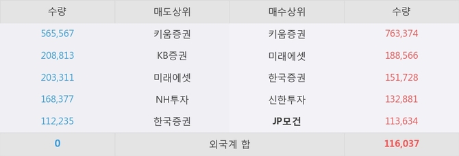 거래원 동향은 JP모건, 미래에셋이 매수 상위 목록에 나타나고 있다.