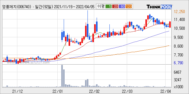 영풍제지는 2021년 매출액 1206억원과 영업이익 81억원을 기록했다. 전년대비 매출은 22.9% 상승했고, 영업이익은 -20.7% 하락했다. 이 회사의 매출액 증감률과 영업이익 증감률은 각각 코스피 상위 31%, 하위 26%에 해당된다.