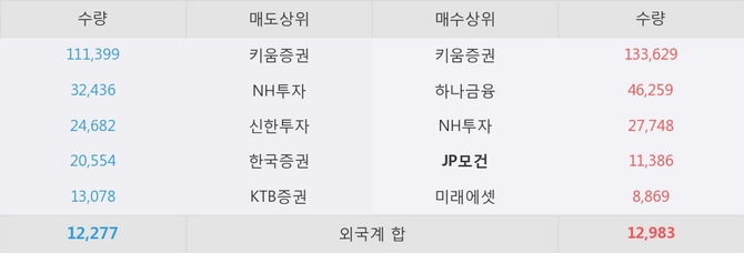거래원 동향은 JP모건, 하나금융, NH투자 등이 매수 상위 목록에 나타나고 있다.