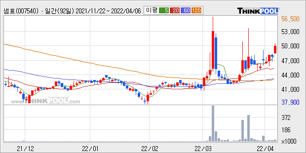 샘표는 2021년 매출액 3490억원과 영업이익 219억원을 기록했다. 전년대비 매출은 9.4% 상승했고, 영업이익은 -46.7% 하락했다. 이 회사의 매출액 증감률과 영업이익 증감률은 각각 코스피 하위 40%, 하위 16%에 해당된다.