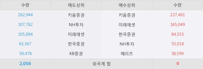 거래원 동향은 미래에셋, NH투자, 메리츠 등이 매수 상위 목록에 나타나고 있다.