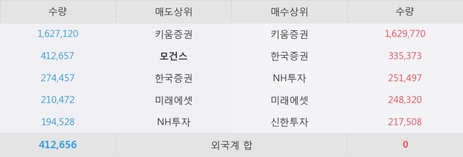 거래원 동향은 NH투자, 미래에셋 등이 매수 상위 목록에 나타나고 있다. 한편, 매도 창구 상위에는 모건스가 눈에 띄고 있다.