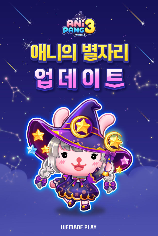 (조세금융신문=이정욱 기자) 위메이드플레이가 모바일 게임 ‘애니팡3’에 신규 콘텐츠 ‘애니의 별자리’를 업데이트하고 기념이벤트를 진행한다고 7일 밝혔다.