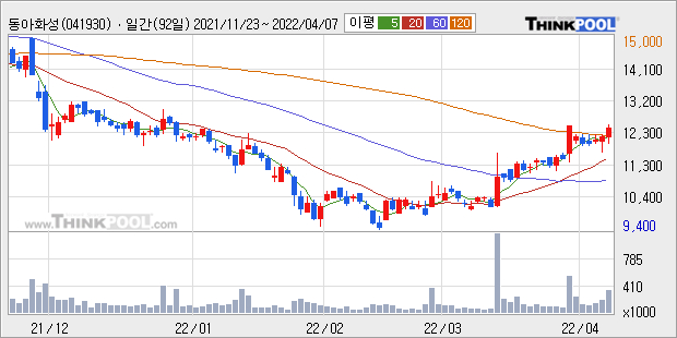 동아화성의 2021년 매출액은 2888억으로 전년대비 10.3% 상승했고, 영업이익 또한 161억으로 전년대비 21.0% 상승했다. 이 회사의 매출액 증감률과 영업이익 증감률은 각각 코스닥 하위 44%, 상위 49%에 해당된다.