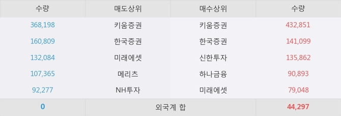 거래원 동향은 하나금융, 미래에셋 등이 매수 상위 목록에 나타나고 있다.