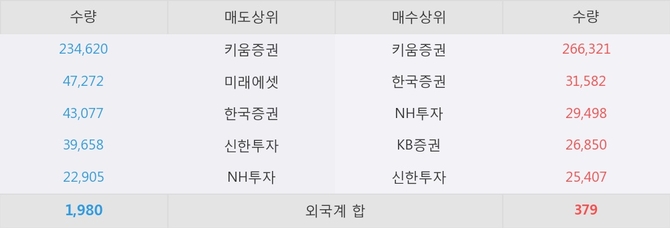 이 시각 주요 거래원은 NH투자, 키움증권, 한국증권 등이 매수 상위 창구에 자리하고 있다.