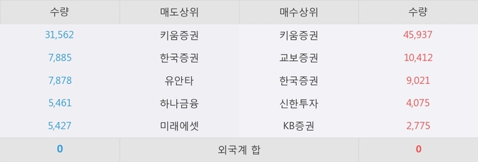 현재 거래원 동향은 키움증권, 교보증권, 한국증권 등이 매수 상위 목록에 나타나고 있다.