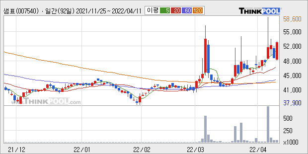 샘표는 2021년 매출액 3490억원과 영업이익 219억원을 기록했다. 전년대비 매출은 9.4% 상승했고, 영업이익은 -46.7% 하락했다. 이 회사의 매출액 증감률과 영업이익 증감률은 각각 코스피 하위 40%, 하위 16%에 해당된다.