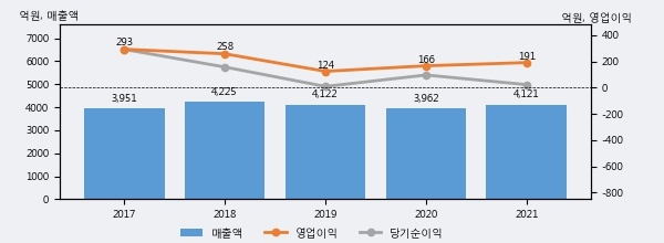 사조동아원의 2021년 매출액은 4121억으로 전년대비 4.0% 상승했고, 영업이익 또한 191억으로 전년대비 14.8% 상승했다. 이 회사의 매출액 증감률과 영업이익 증감률은 각각 코스피 하위 29%, 하위 47%에 해당된다.