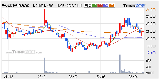 국보디자인의 2021년 매출액은 전년대비 12.1% 늘어난 3230억원이고, 영업이익 또한 전년대비 0.04% 늘어난 258억원을 기록했다. 이 회사의 매출액 증감률과 영업이익 증감률은 각각 코스닥 하위 48%, 하위 41%에 해당된다.