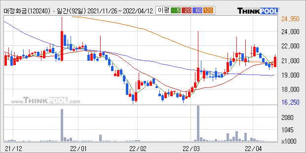 대정화금의 2021년 매출액은 전년대비 10.9% 늘어난 889억원이고, 영업이익은 전년대비 -22.0% 줄어든 79억원을 기록했다. 이 회사의 매출액 증감률과 영업이익 증감률은 각각 코스닥 하위 45%, 하위 32%에 해당된다.