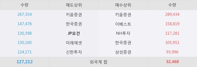 거래원 동향은 NH투자, 삼성증권 등이 매수 상위 목록에 나타나고 있다. 한편, 매도 창구 상위에는 JP모건이 눈에 띄고 있다.