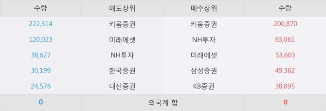 거래원 동향은 NH투자, 미래에셋, 삼성증권 등이 매수 상위 목록에 나타나고 있다.