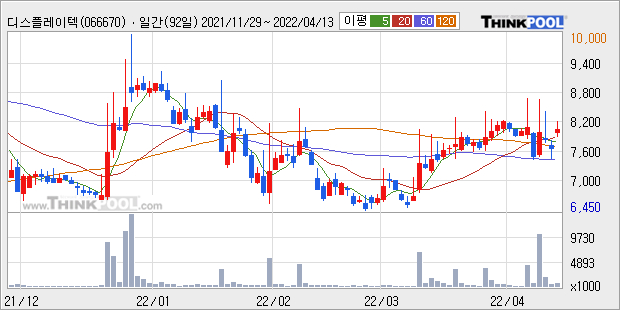 디스플레이텍의 2021년 매출액은 1228억으로 전년대비 239.0% 상승했고, 영업이익은 36억으로 전년대비 -7.8% 하락했다. 이 회사의 매출액 증감률과 영업이익 증감률은 각각 코스닥 상위 2%, 하위 37%에 해당된다.