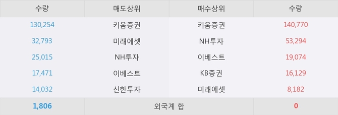 거래원 동향은 NH투자, 미래에셋 등이 매수 상위 목록에 나타나고 있다.