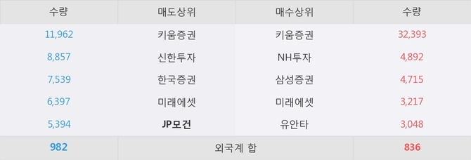 거래원 동향은 NH투자, 삼성증권, 미래에셋 등이 매수 상위 목록에 나타나고 있다. 한편, 매도 창구 상위에는 JP모건이 눈에 띄고 있다.