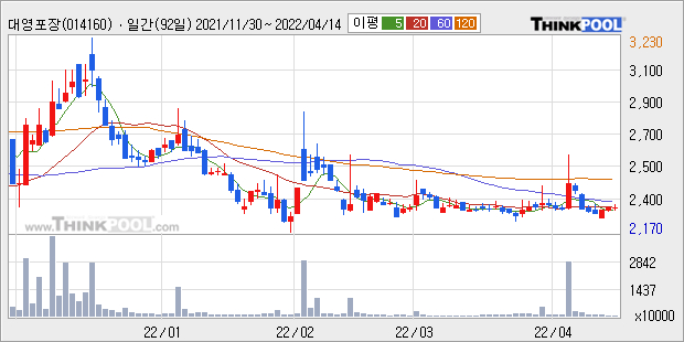 대영포장의 2021년 매출액은 3226억으로 전년대비 23.7% 상승했고, 영업이익 또한 122억으로 전년대비 160.0% 상승했다. 이 회사의 매출액 증감률과 영업이익 증감률은 각각 코스피 상위 30%, 상위 19%에 해당된다.
