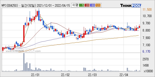 NPC은 2021년 매출액 4869억원과 영업이익 283억원을 기록했다. 전년대비 매출은 12.9%, 영업이익은 36.6% 각각 상승했다. 이 회사의 매출액 증감률과 영업이익 증감률은 각각 코스피 하위 48%, 상위 45%에 해당된다.