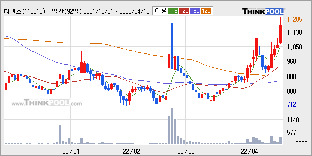 디젠스의 2021년 매출액은 전년대비 -14.7% 줄어든 698억원이고, 영업이익은 전년대비 198.3% 늘어난 36억원을 기록했다. 이 회사의 매출액 증감률과 영업이익 증감률은 각각 코스닥 하위 13%, 상위 14%에 해당된다.