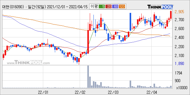 대현의 2021년 매출액은 전년대비 13.7% 늘어난 2879억원이고, 영업이익 또한 전년대비 214.3% 늘어난 224억원을 기록했다. 이 회사의 매출액 증감률과 영업이익 증감률은 각각 코스피 상위 49%, 상위 14%에 해당된다.
