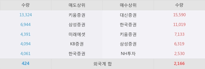 거래원 동향은 삼성증권, NH투자 등이 매수 상위 목록에 나타나고 있다.