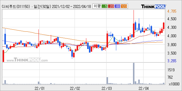 CJ씨푸드는 2021년 매출액 1621억원과 영업이익 45억원을 기록했다. 전년대비 매출은 8.8%, 영업이익은 13.6% 각각 상승했다. 이 회사의 매출액 증감률과 영업이익 증감률은 각각 코스피 하위 38%, 하위 46%에 해당된다.