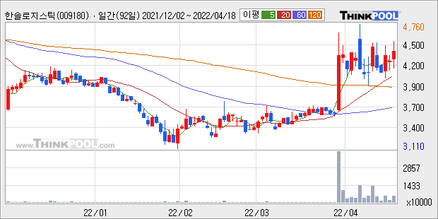 한솔로지스틱스의 2021년 매출액은 전년대비 46.6% 늘어난 7470억원이고, 영업이익 또한 전년대비 131.7% 늘어난 303억원을 기록했다. 이 회사의 매출액 증감률과 영업이익 증감률은 각각 코스피 상위 10%, 상위 23%에 해당된다.