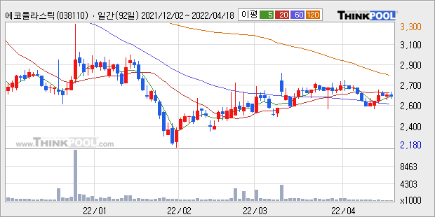 에코플라스틱의 2021년 매출액은 전년대비 17.5% 늘어난 1조 5176억원이고, 영업이익 또한 전년대비 588.6% 늘어난 158억원을 기록했다. 이 회사의 매출액 증감률과 영업이익 증감률은 각각 코스닥 상위 43%, 상위 4%에 해당된다.