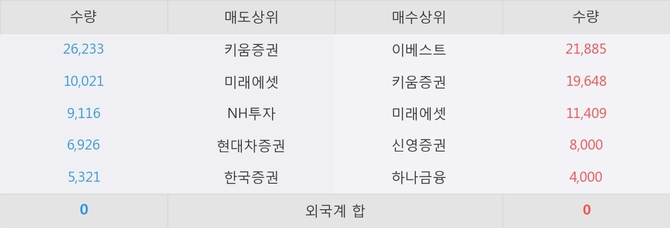 거래원 동향은 미래에셋, 하나금융 등이 매수 상위 목록에 나타나고 있다.