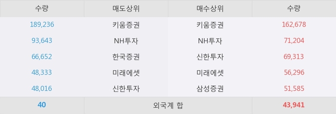 거래원 동향은 NH투자, 미래에셋, 삼성증권 등이 매수 상위 목록에 나타나고 있다.