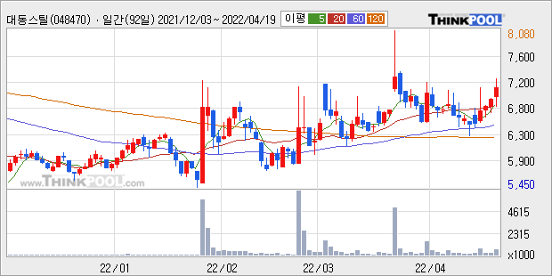 대동스틸의 2021년 매출액은 전년대비 55.5% 늘어난 1654억원이고, 영업이익 또한 전년대비 1,590.4% 늘어난 176억원을 기록했다. 이 회사의 매출액 증감률과 영업이익 증감률은 각각 코스닥 상위 13%, 상위 1%에 해당된다.