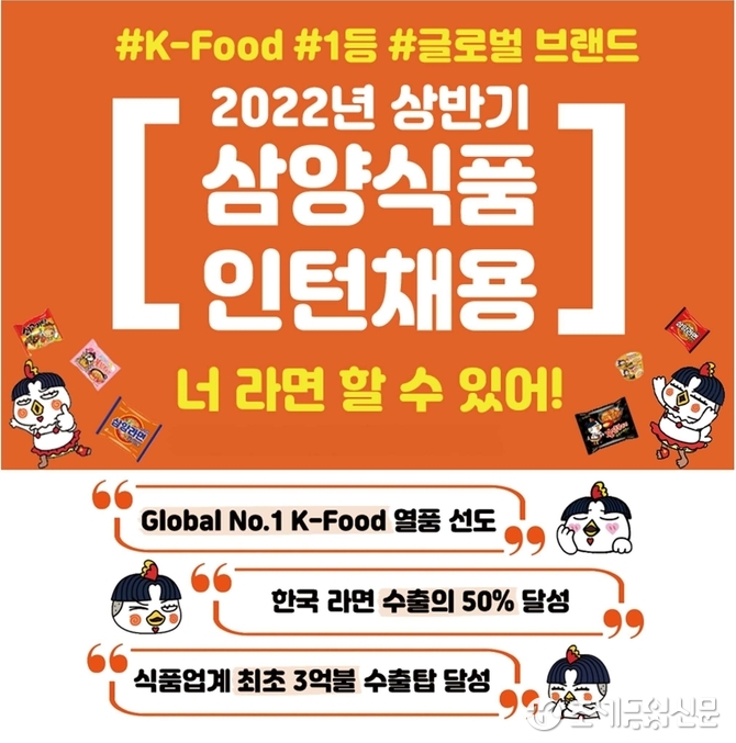(조세금융신문=구재회 기자) 삼양식품이 채용 연계형 인턴을 모집한다.