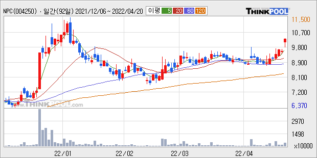 NPC은 2021년 매출액 4869억원과 영업이익 283억원을 기록했다. 전년대비 매출은 12.9%, 영업이익은 36.6% 각각 상승했다. 이 회사의 매출액 증감률과 영업이익 증감률은 각각 코스피 하위 48%, 상위 45%에 해당된다.