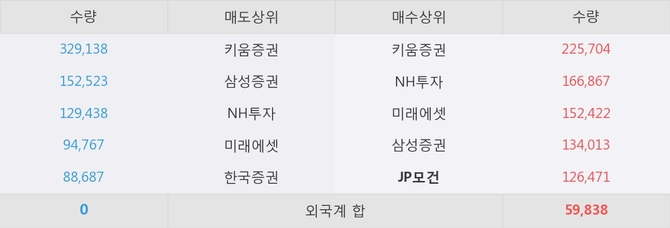 거래원 동향은 JP모건, NH투자, 미래에셋 등이 매수 상위 목록에 나타나고 있다.