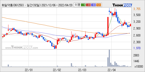 화일약품의 2021년 매출액은 1070억으로 전년대비 -13.4% 하락했고, 영업이익 역시 43억으로 전년대비 -7.0% 하락했다. 이 회사의 매출액 증감률과 영업이익 증감률은 각각 코스닥 하위 14%, 하위 37%에 해당된다.