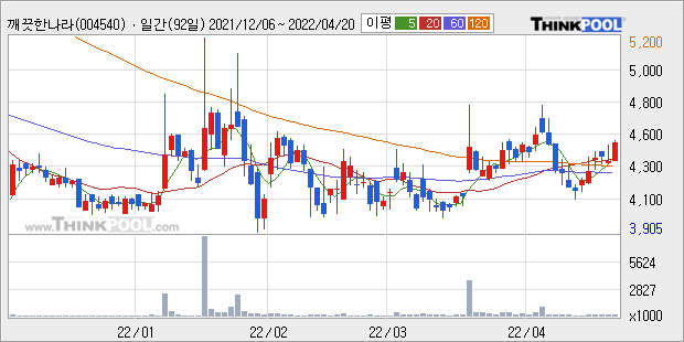 깨끗한나라는 2021년 매출액 5787억원과 영업이익 130억원을 기록했다. 전년대비 매출은 -2.2%, 영업이익은 -75.0% 각각 하락했다. 이 회사의 매출액 증감률과 영업이익 증감률은 각각 코스피 하위 17%, 하위 12%에 해당된다.