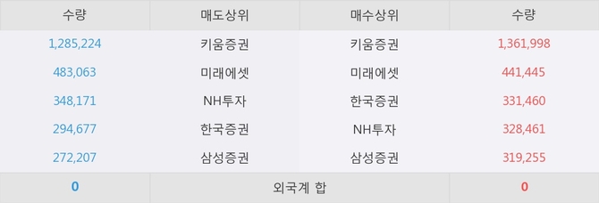 거래원 동향은 미래에셋, NH투자, 삼성증권 등이 매수 상위 목록에 나타나고 있다.