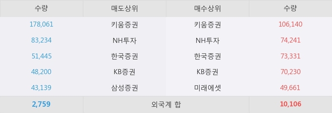 거래원 동향은 NH투자, 미래에셋 등이 매수 상위 목록에 나타나고 있다.