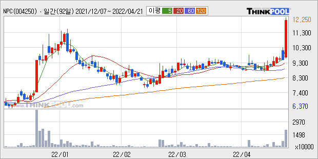 NPC의 2021년 매출액은 전년대비 12.9% 늘어난 4869억원이고, 영업이익 또한 전년대비 36.6% 늘어난 283억원을 기록했다. 이 회사의 매출액 증감률과 영업이익 증감률은 각각 코스피 하위 48%, 상위 45%에 해당된다.