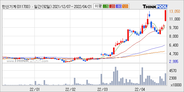 한신기계의 2021년 매출액은 전년대비 5.3% 늘어난 544억원이고, 영업이익 또한 전년대비 33.0% 늘어난 52억원을 기록했다. 이 회사의 매출액 증감률과 영업이익 증감률은 각각 코스피 하위 30%, 상위 46%에 해당된다.