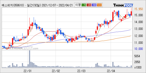 에스피지의 2021년 매출액은 전년대비 17.3% 늘어난 4163억원이고, 영업이익 또한 전년대비 30.2% 늘어난 235억원을 기록했다. 이 회사의 매출액 증감률과 영업이익 증감률은 각각 코스닥 상위 44%, 상위 45%에 해당된다.
