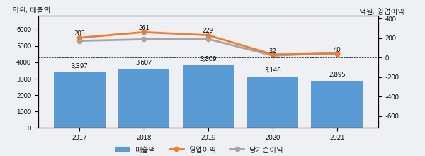 동아지질의 2021년 매출액은 전년대비 -8.0% 줄어든 2895억원이고, 영업이익은 전년대비 24.4% 늘어난 40억원을 기록했다. 이 회사의 매출액 증감률과 영업이익 증감률은 각각 코스피 하위 10%, 상위 49%에 해당된다.