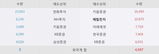 이 시간 메릴린치가 매수창구상위에 올라있는 종목은 이 종목 이외에도 큐에스아이, 풍산홀딩스 등이 있다.