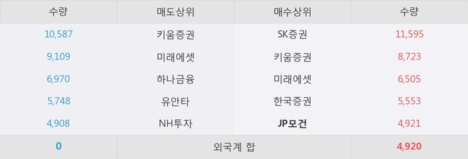 거래원 동향은 JP모건, 미래에셋이 매수 상위 목록에 나타나고 있다.