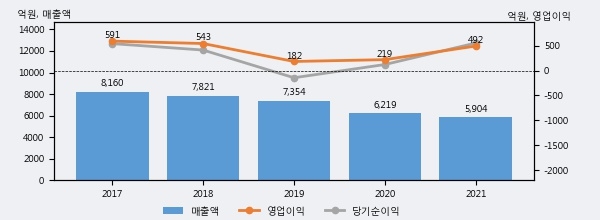 최근 3년간의 실적을 살펴보면, 매출액은 3년 연속 하락하고 있으나 그 하락폭은 줄어들고 있음을 알 수 있다.