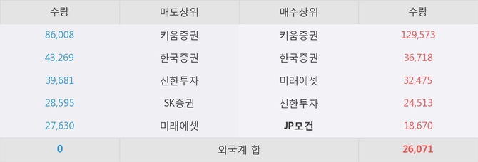 거래원 동향은 JP모건, 미래에셋이 매수 상위 목록에 나타나고 있다.