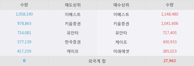 현재 거래원 동향은 이베스트, 키움증권, 유안타 등이 매도 상위 목록에 나타나고 있다.