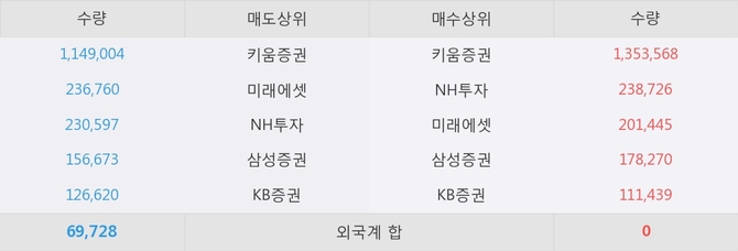 거래원 동향은 NH투자, 미래에셋, 삼성증권 등이 매수 상위 목록에 나타나고 있다.