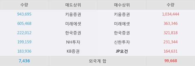 이 시간 JP모건이 매수창구상위에 올라있는 종목은 이 종목 이외에도 푸드나무, 원익 등이 있다.